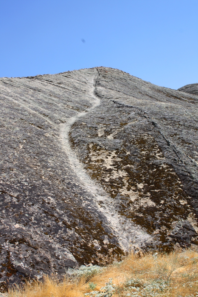The trail to the top of the rock and where the pictograph is located. It is well worn from centuries of use.