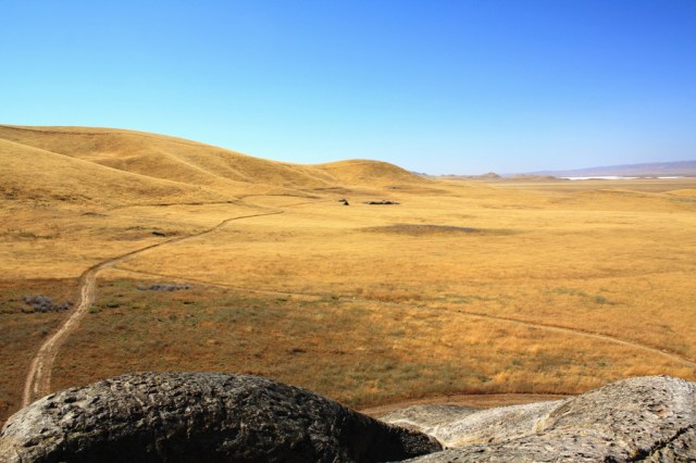 This shot is taken from just above where the pictograph is painted and shows the Carrizo Plain and the Caliente Range in the background.