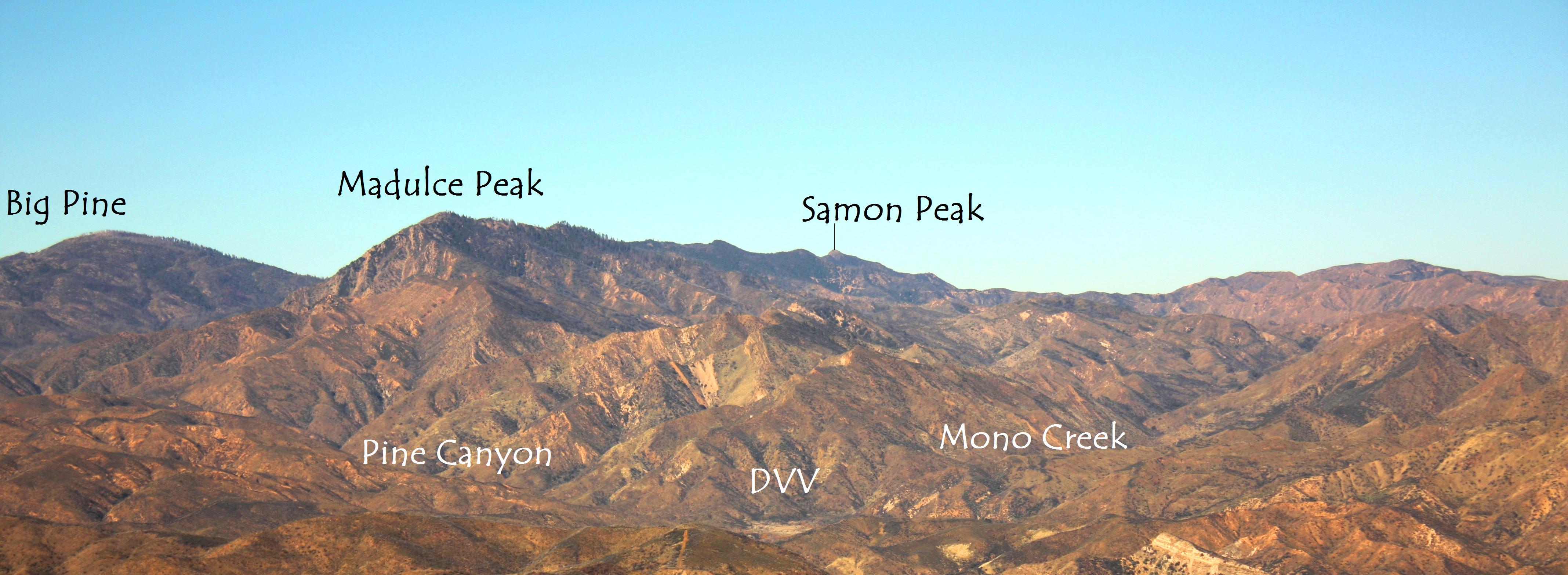 Looking at Don Victor Valley, circled in red, from the junction of Potrero Seco Road and Loma Pelona-Victor Road.