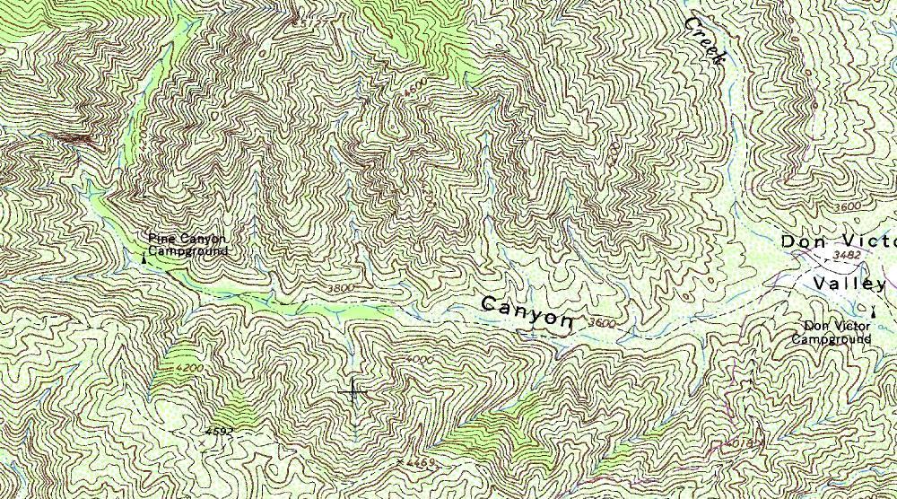 Map from 1988 showing the location of Pine Canyon Camp. (Click to enlarge.)