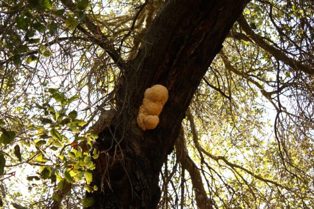 Ach, now you’ve ruined it for me, Jack … I saw one of these up on Arroyo Burro Road last month and I swear it looked like somebody had stuffed Garfield into the knot of this great oak tree. Now the image is dashed … it’s a “Hericium”. 😉