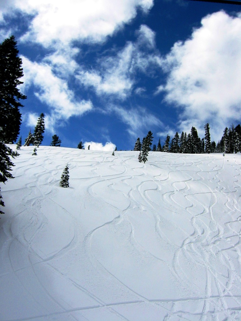 The snow has fallen light and deep Soon will come all powder freaks To carve and shred the mountain tops Until they sit for a swig of Schnapps A nip here and there as they convene Then they’re off like a pack of fiends To search the mountain for some fresh And out of bounds for all the rest Dropping the hill for the last time A butt wigglin’ skier they are sure to find Blowing by him like there is no tomorrow They’re off on their way home only to follow