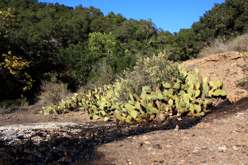The oil originates just out of frame on the right and flows past this cactus and down onto the flats and into the creek.