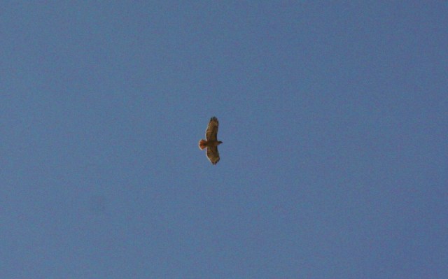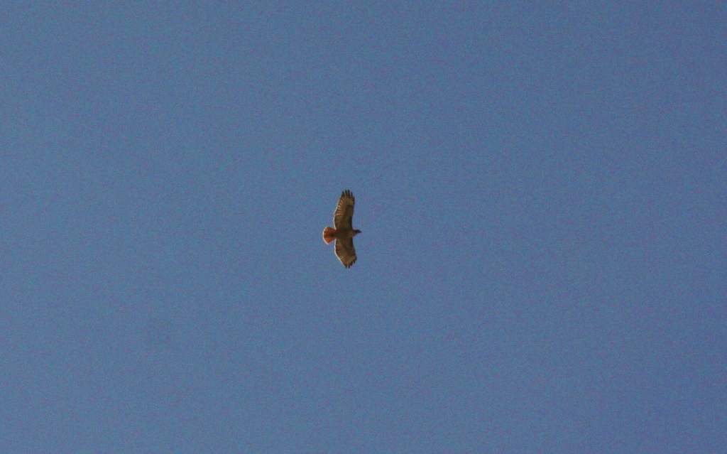 With little shade along the wall, I crawled up beneath a small shrub growing on a bend in the trail to seek shelter from the increasing heat of the early afternoon sun. I watched two Red-tailed Hawks riding the thermals rising off the ridge, soaring up and down the sun baked grassy slope, their fierce sounding cries breaking the backcountry silence.