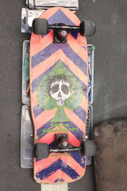 Something else caught my eye lying on some chalk boxes beside a mural, an all original Powell Peralta Steve Steadham from 1985 hardly ridden.