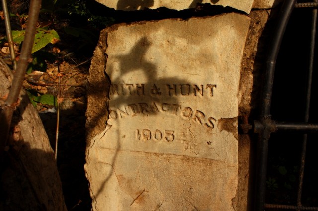 At some point several years later, contractors F. S. Smith and E. J. Hunt fashioned a concrete facade for the old Cold Spring Tunnel, as seen in the photo below. Smith and Hunt were the contractors that bored the southern portion of Mission Tunnel starting in 1904, which eventually tapped the reservoir created with the completion of Gibraltar Dam in 1920.