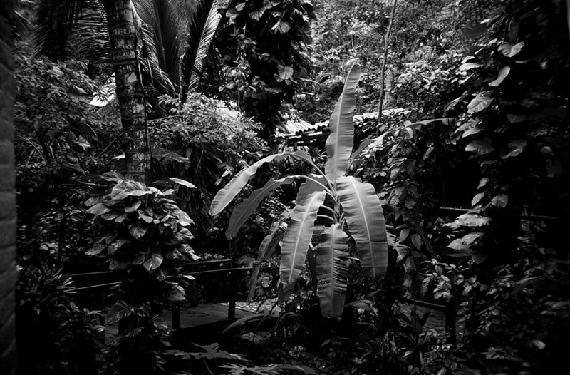 Wooden walkways and tile roofs amidst the verdant tangle of the Oaxacan coast.