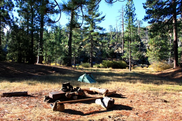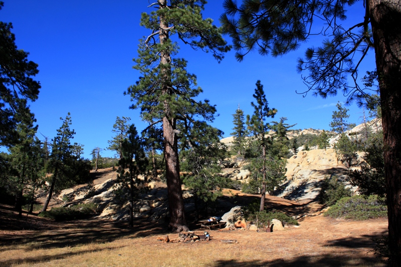 After the first night I moved my tent atop a small rise beneath the pines and oaks (seen in the previous photo on the left).