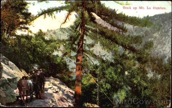 A postcard from 1914 depicting the La Cumbre Trail, the construction of which was paid for by the Santa Barbara Chamber of Commerce sometime around the turn of the nineteenth century.