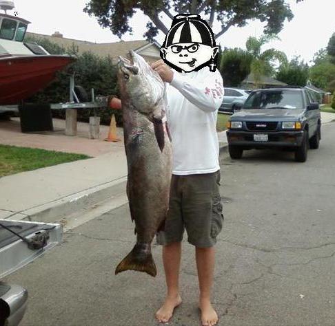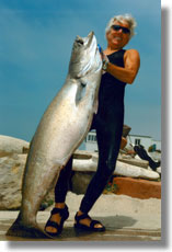 Bill Ernst and his California record 93-pound, 4-ounce white seabass shot off Malibu in 2007. (c) NOAA