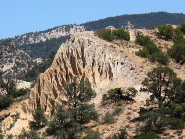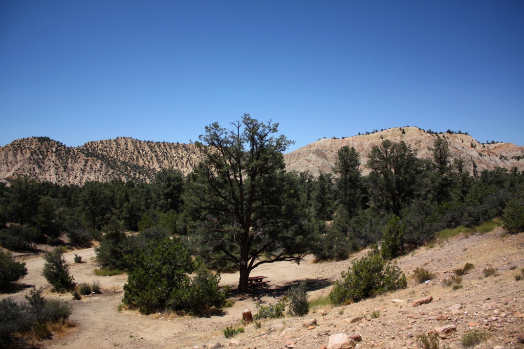Overlooking Dome Springs Camp in Dry Canyon (August 2011). The camp’s name is a misnomer, according to “A Camper’s Guide to the Tri-County Are” by Bob Burtness, there is no spring at this camp. Although, there is a spring labeled on maps I have.