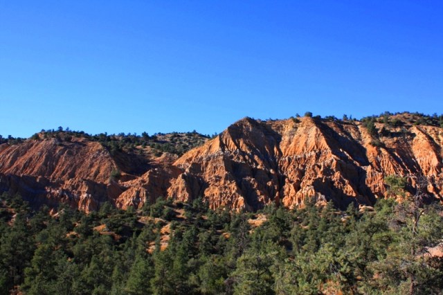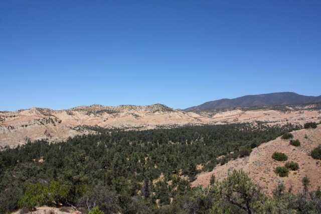 A view from higher on the hill overlooking Dome Springs Camp hidden among the pinyon pine.