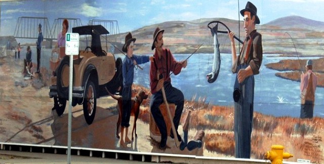 One of the many murals in Lompoc, this one depicts how fishing once was at the river mouth not far from town. Painted in 1994 by Roger Cooke and other artists, it’s entitled, “Steelhead Fishing in the Santa Ynez River.”