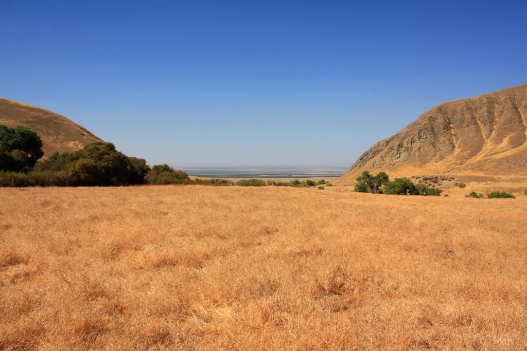 The view looking through the canyon mouth toward the San Joaquin Valley.