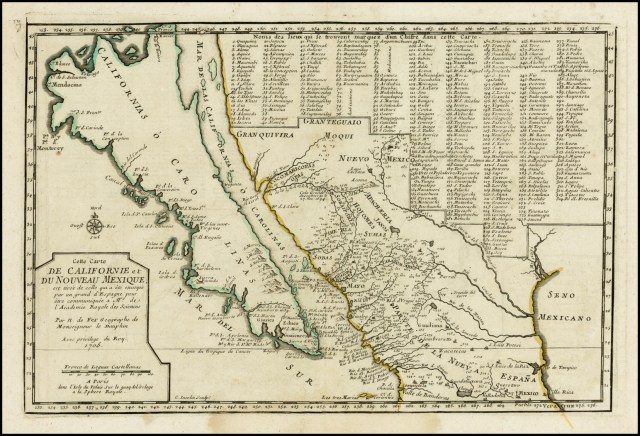 2. Jack, Milton Hammer used to own a rare book store in El Paseo and had a copy of a 17th Century Spanish map that showed California as an island. I’ve never seen another copy despite looking for three decades. This French map is the only other one I’ve seen.