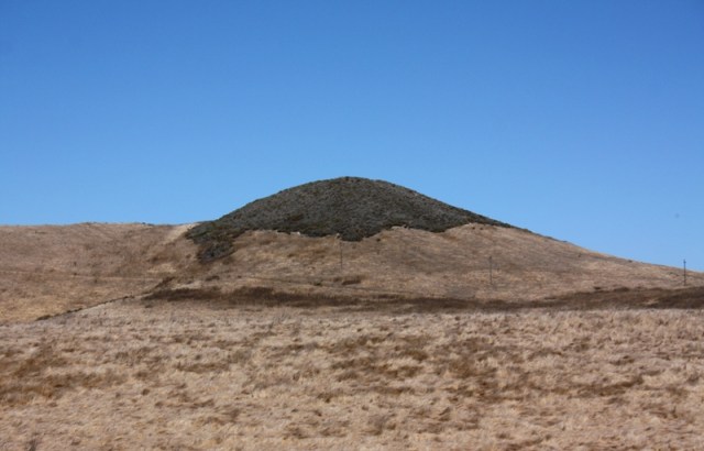 The Vaqueros Formation seen again here making up the rocky, chaparral covered mountain at Gaviota Pass with a grass covered hill of Rincon mudstone soil below.