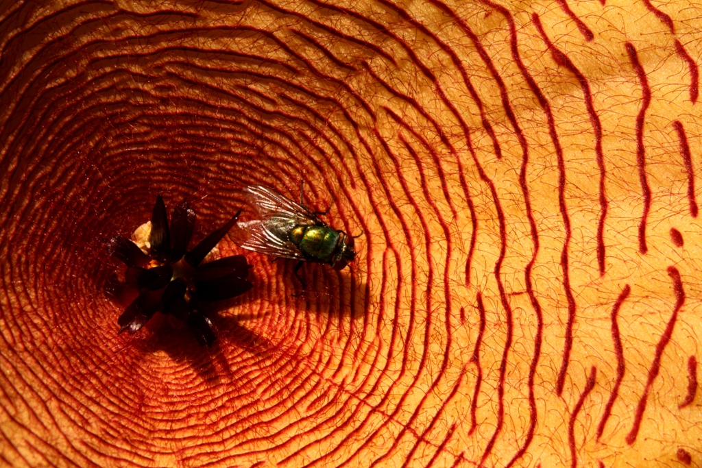 The flowers are big and hairy and attract flies and beetles rather than butterflies and hummingbirds. Through a combination of color and design the bloom is made to appear like a bloody wound, while wafting from its petals floats the putrid scent of rotting flesh. The blooms are irresistible to dead animal loving insects.