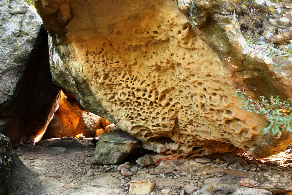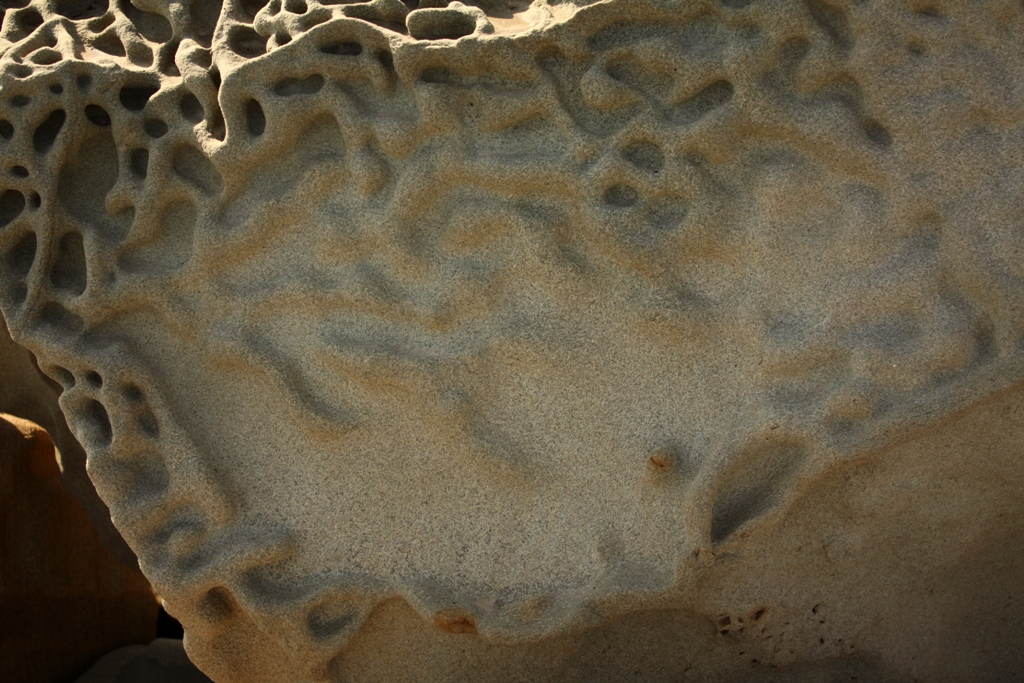 In Santa Barbara County this remarkable phenomenon can be found in many different environments including the beach, creeks and exposed rock outcrops in mountain terrain. A variety of theories exist explaining how tafoni develops and grows, but it’s largely shrouded in mystery and among scholars and scientists there is disagreement over the matter.