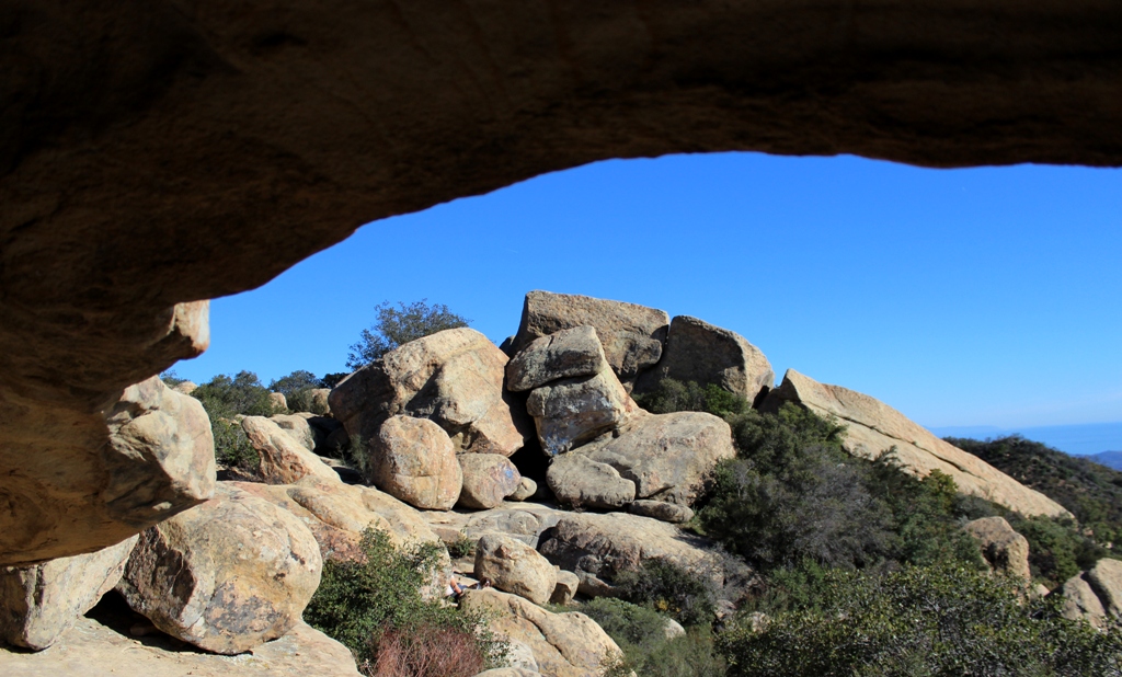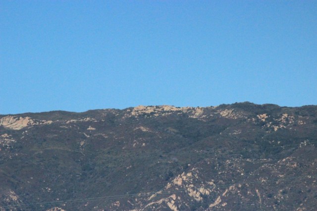 The Lizard’s Mouth outcrop, as seen from Goleta Beach, is located center frame at the crest of the mountain.