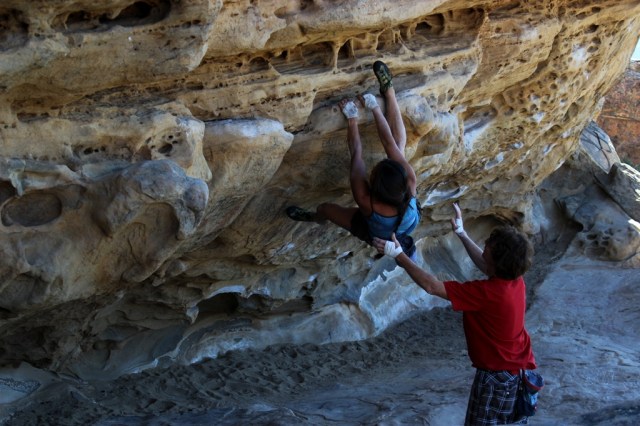 Looking up at the sandstone formation known as “Lizard’s Mouth.”