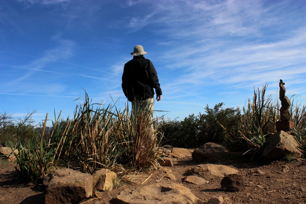 I hiked up to Gaviota Peak (Jack’s Map) and back via a circuit route, as noted above by the red dots. I began in Gaviota State Park and, following the Gaviota Peak fire road, entered into the Los Padres National Forest and on up to the peak. I returned along the Tunnel View Trail so named because it overlooks the highway tunnel through the mountain at Gaviota Pass.