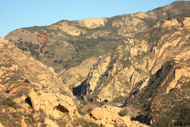 The red circle notes the location where the previous photo was taken. The section of roadway is U.S. Highway 101 through the Gaviota Pass.