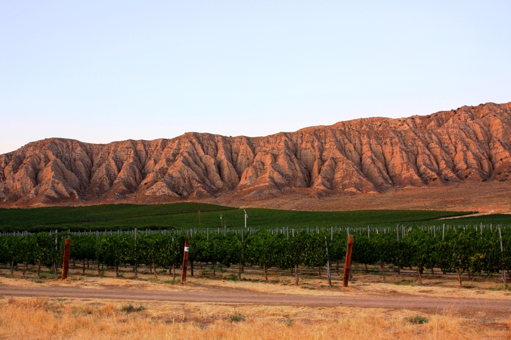 Whenever I’m on Highway 33 in Santa Barbara County along the upper Cuyama River, and drive through the hamlet of Ventucopa, the vineyard shown above always catches my eye. Especially when it’s flush with shiny green leaves like in this summertime photo. I appreciate the aesthetics. The striking contrast of well-tended plants and precise design set against the rugged and stark Cuyama badlands as a backdrop. But I see more than superficial beauty. The vineyard lies like art on the dry and barren terrain of the sparsely populated valley, an agricultural gem reflecting the agrarian legacy humanity.