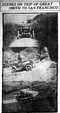 The following excerpt comes from an article in the Los Angeles Herald published on June 14, 1908 and titled “Scenes on Trip of Great Smith to San Francisco.”
