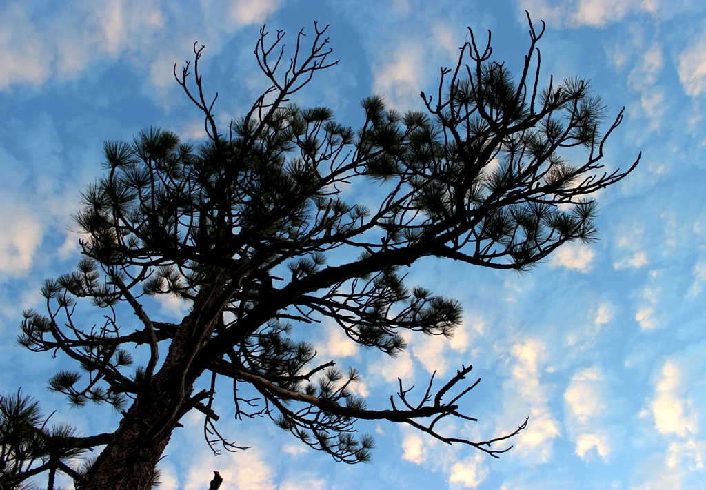 The silhouette of one pine beside Chorro Grande Trail that makes up the pair known to some as the Sentinel Trees.