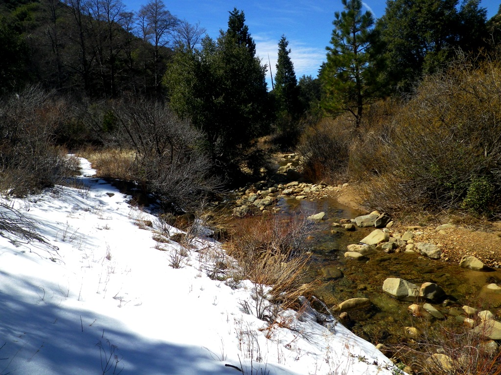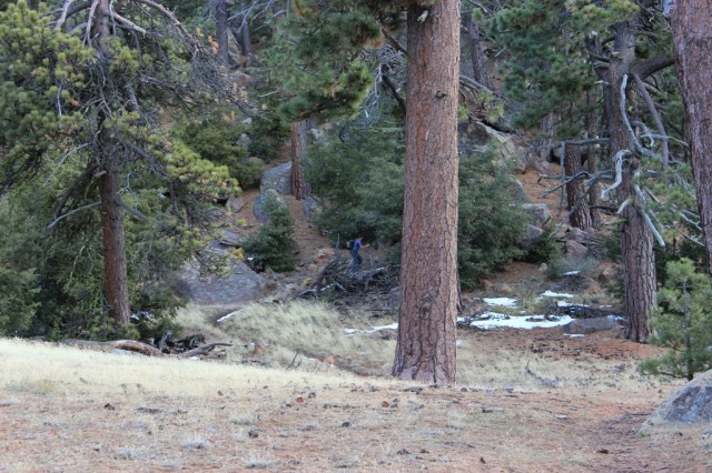 Yeah, the open pine forest of the Pine Mountain area is killer. Way easier to get into than behind SB. Nice, indeed, to actually be able to walk off trail as opposed to the dense chaparral bramble so typical of the San Rafael. I can’t wait to get back up on Pine Mountain. I was up there at the summit on 33 on Monday to mess around in the snow. Saw a guy heading up the closed Pine Mountain Ridge Road with snow shoes on his pack. Boy was I envious! It was a killer day for a snow hike after that last snowfall!