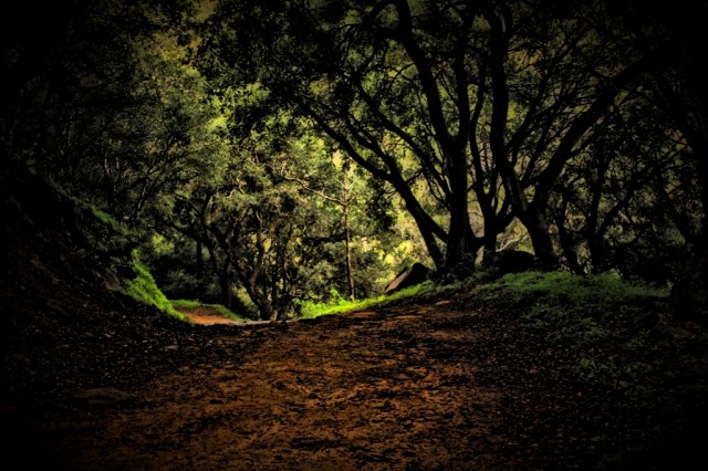 A section of San Ysidro Trail under the oaks in the Montecito Foothills, Santa Barbara County, California.