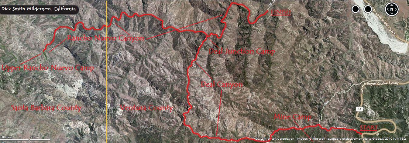 I last through hiked Rancho to Deal where I had a bike stashed for the ride back to Tinta in 1999. Not one tick. I actually missed the Deal/Connector junction, there was no sign at the time. So I came out further up the highway and had to walk down in the dark to get to my bike. I just went back 02/27/2021 to go in at the Deal (Ozena) Trl head to find my previous error. there’s a beautiful new sign now LOL. I was impressed with the amount of ticks through Deal, a post fire bloom I imagine(?) As I got close to Deal Junction I decided to through hike out Rancho Nuevo (no ticks) then stay in the river bottom back to my car at Deal Trl head. I went back the next week 3/7/2021 walking from the Tinta gate to RN with intention of finding URN camp and reported archeological sites. Again the ticks were insane on URN. I stopped at approx 3 miles in where finally after a bunch of ugly to look at stuff the valley ends in a V with some dramatic rock formations and a rock wall across the back of the V, but more bushwhacking and ticks to get there. I must have been within a 1/2 mile. I lunched and turned around. Ticks not as bad on the return. They had not had a chance to re-establish themselves on the bushes I had just passed through, but I was seriously disappointed that now on the beautiful lower Rancho Nuevo stretch it was alive with ticks!!!