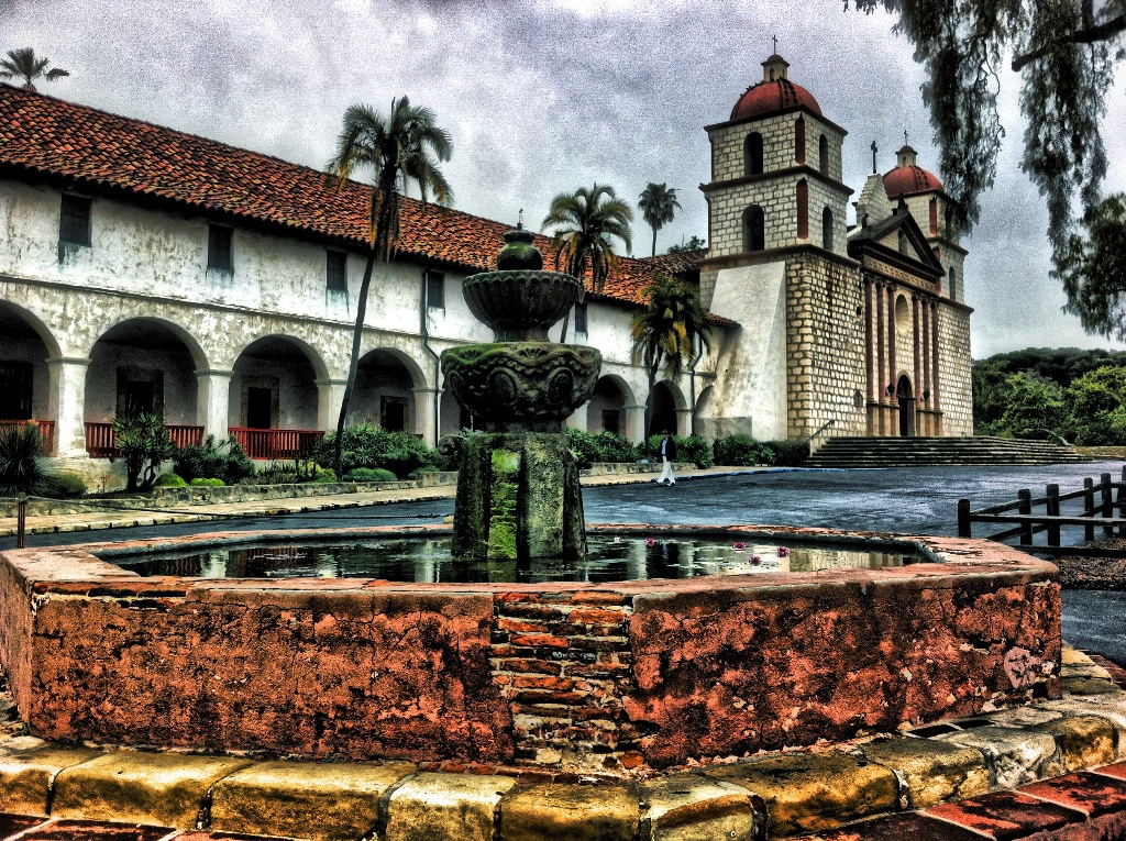 Mission Santa Barbara, “Queen of the Missions,” was built in 1820. The original church was founded on December 4, 1786 and was the tenth mission built by the Spanish Franciscans in California. It was later rebuilt twice, its size increased each time, before the building standing today was constructed. The Moorish water fountain was sculpted in 1808 by José Antonio Ramírez.