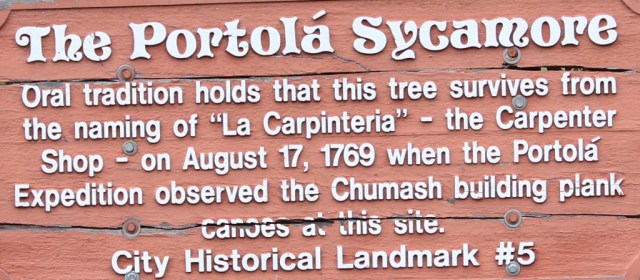 Historical marker in Carpinteria, California at a towering, old sycamore tree a short walk from the oil seep featured in the video below.