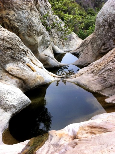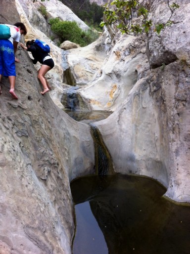 She was leading him up the creek, and had hoisted herself up the first wall with little effort, and then with fluid ease systematically picked her way across the next section above the water. As her male companion slowly made his way along at a snail’s pace with far more difficulty, and serious reservations about continuing up the trail as he made abundantly clear, she praised every step he finally decided to take assuring him he was doing good.