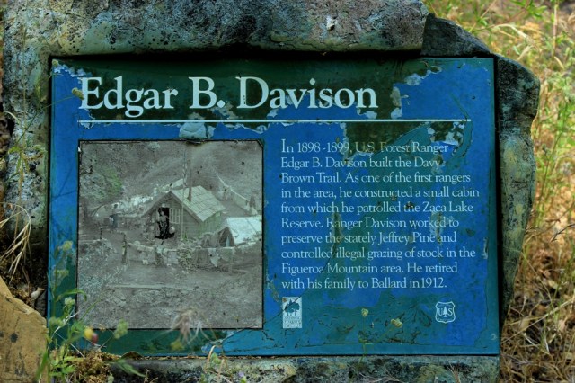 Davison created the Davy Brown Trail between 1898 and 1899. The three mile path leads down the backside of Figueroa Mountain (4528′) to Sunset Valley and what today is Davy Brown Campground (2095′).