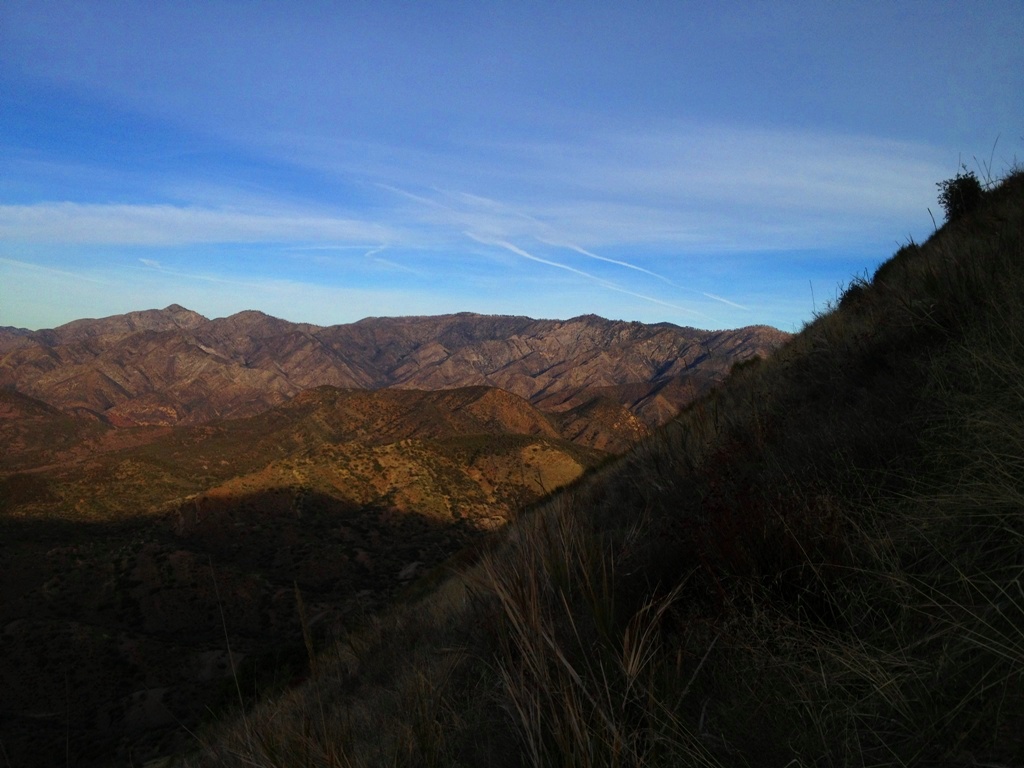 White acre 4The steep grassy slope we followed up the mountain. San Rafael Peak is visible in the distance on the left.