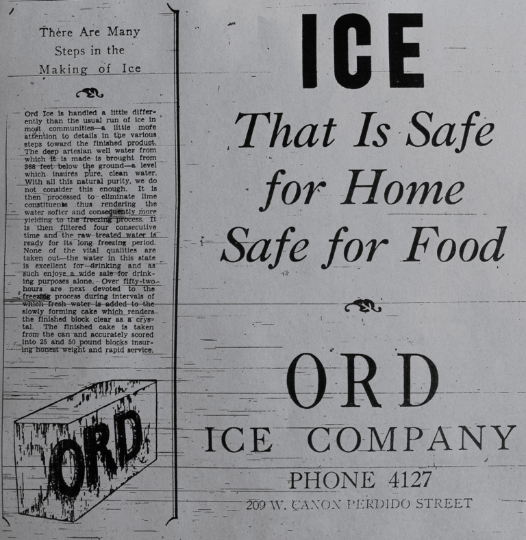 This post is an addition to a previous entry about the history of the ice can stoves found in California’s Los Padres National Forest (The Ice Can Stove: A Brief History). These are makeshift wood burning stoves made from old sheet metal molds once used to freeze water into blocks of ice. The advertisements from local companies were originally published in the Santa Barbara Morning Press in the 1920s.