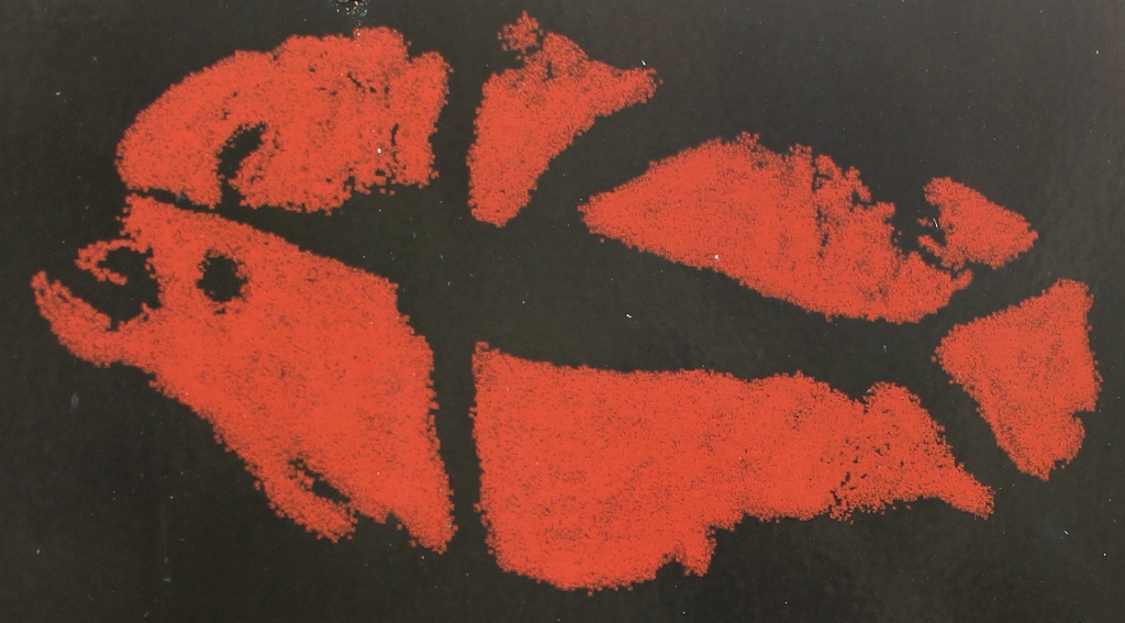 I, too, visited this site recently. I wonder if you noticed a second negative image on the opposite cave wall. I couldn’t quite make out what it is, though, but it does have the same general appearance as the swordfish: an oval of red with a black drawing over it.