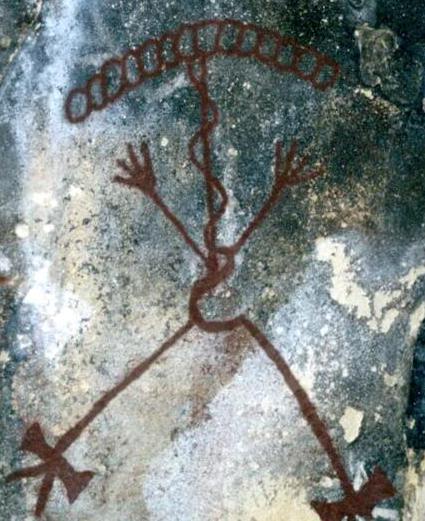 Chumash Pictograph DesignA touched up version of the design element noted and shown in the previous photo. This is a redrawn image that enhances the design and relatively accurately conveys the general sense of the original artwork, but is not an exact representation.