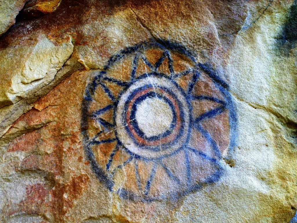 Chumash rock art pictograph santa ynez mountains santa barbaraAn exceptional Chumash mandala pictograph in the mountains of Santa Barbara County.