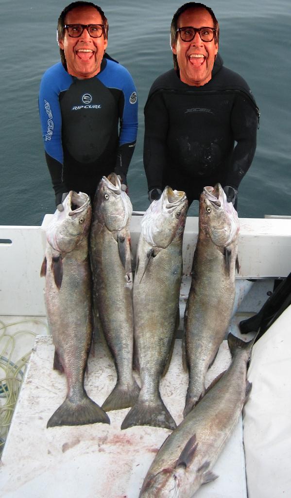 Jack in blue with a friend and well over two hundred pounds of freshly caught white seabass shot somewhere in Santa Barbara County.