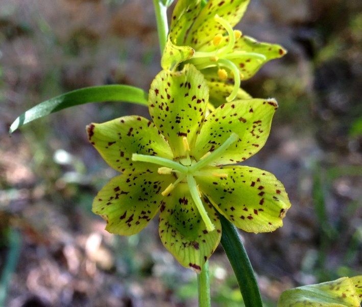 A single Fritillaria ojaiensis growing along Fremont Trail in the Santa Ynez Mountains. This photo is from early spring 2014.