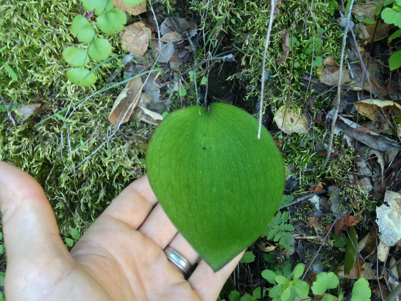 A Fritillaria ojaiensis leaf sprouting from a bank along Oso Creek in the Los Padres National Forest. There is a fairly large grouping of them at this site, more than 100 individual plants. Photo from February 2015.
