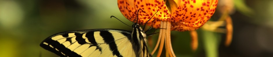 I had been waiting years to capture a snapshot of a swallowtail on a lily, two of the most striking small varieties of life in the forest. And here was my opportunity. Had I been able to hoist my dog over the waterfalls a short time earlier I would not have stumbled upon this chance.