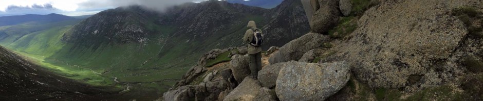 Goatfell Peak hiking Scotland Macrie MoorDenuded valleys and hills. Glen Rosa as seen from Goatfell Peak.