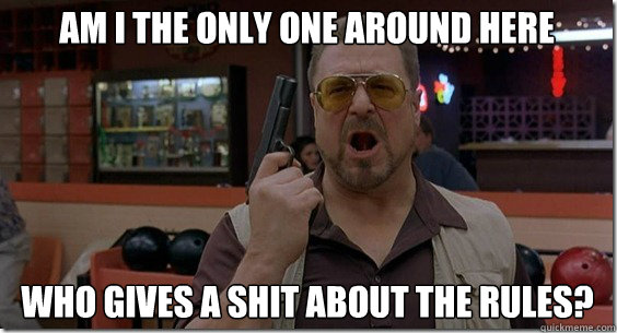 It leaves me wondering . . . Am I the only one that cares about the rules around here?!