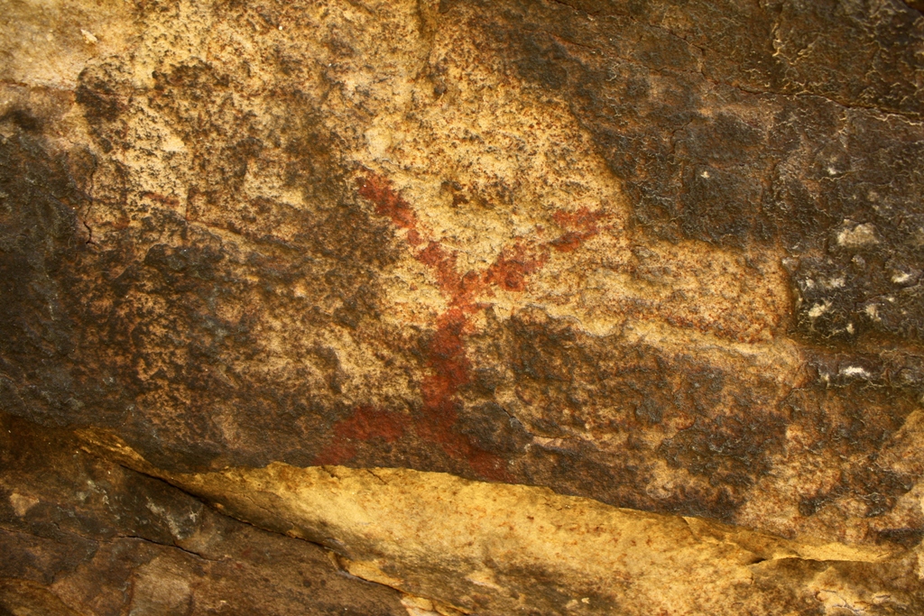 Happy Hunting Ground Chumash Indian pictographs rock art San Rafael WildernessA remnant of a Chumash pictograph found along a trail in the San Rafael Wilderness.