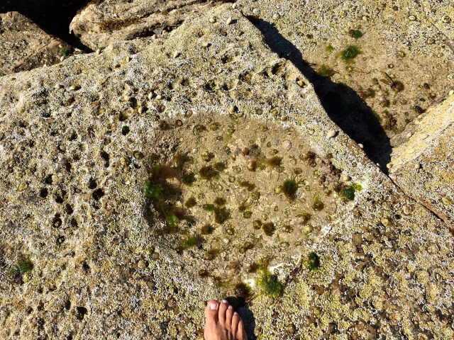 Same site as noted above. The footprints are found on the beige slab of stone jutting into the sea.