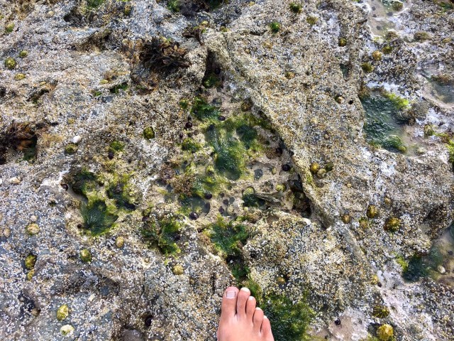 So onward we all walked eager to find the prehistoric treasure we were after. I asked a younger couple on their way off the beach if they’d found the prints. They said just a few small ones but nothing big. They didn’t find anything, I figured by the sound of it. They just didn’t want to admit it. My hope shriveled a bit.